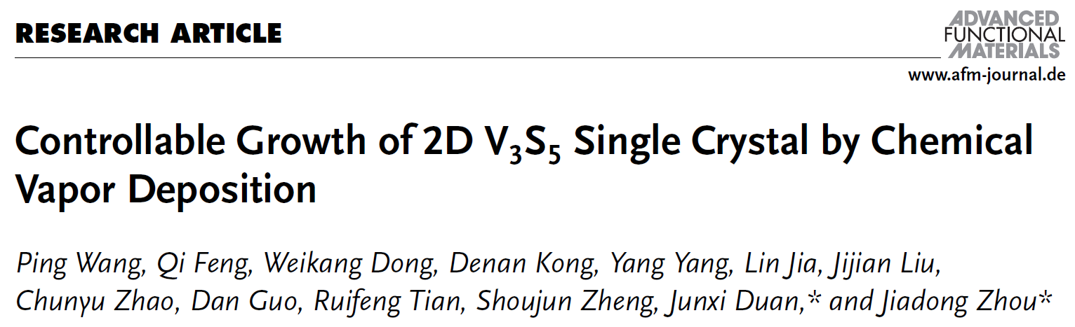 日前,北京理工大學物理學院周家東教授與段俊熙副研究員開展合作,在二維釩基自插層硫族化合物的體系中,通過化學氣相沉積方法,基于二元金屬前驅體共反應機制,可控合成二維自插層V3S5晶體材料,并研究其相關物性。相關研究成果發表在國際頂刊《Advanced Functional Materials》上。