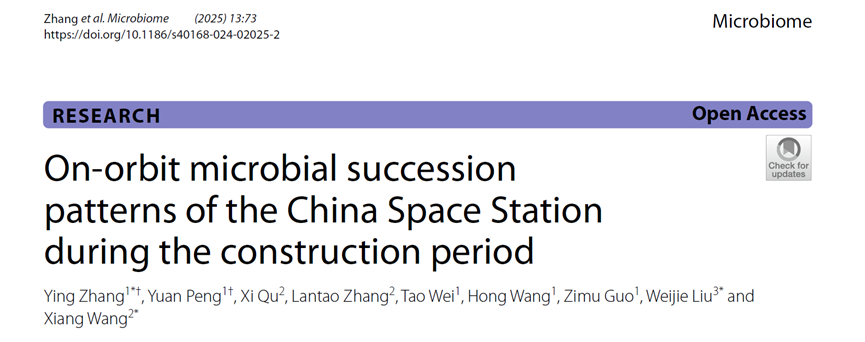 近日,北京理工大學張瑩教授在微生物組學國際頂級期刊《MICROBIOME》(平均5年影響因子:17.9)上發表了題名為“On?orbit microbial succession patterns of the China Space Station during the construction period”的學術研究論文。該論文以北京理工大學生命學院作為第一通訊單位,中國空間技術研究院北京飛行器總體設計部為第二通訊單位,張瑩教授與其碩士研究生彭園作為共同第一作者,張瑩教授和空間站系統總指揮王翔研究員為共同通訊作者。
