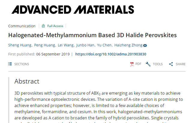 近日,北京理工大學(xué)材料學(xué)院鐘海政課題組在鈣鈦礦材料A位分子的設(shè)計(jì)和制備...