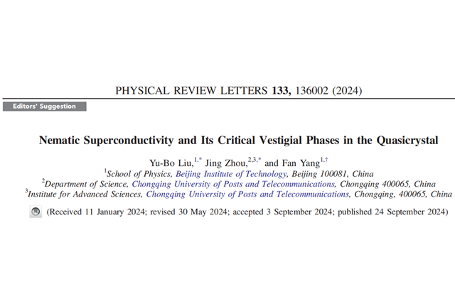 近日,北京理工大學物理學院周家東教授、劉瑞斌教授、鄭守君副教授和黃翔葳...