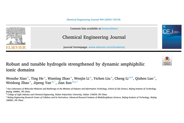 近日,北京理工大學綠色生物制造團隊在離子液體改性水凝膠方面取得新進展。