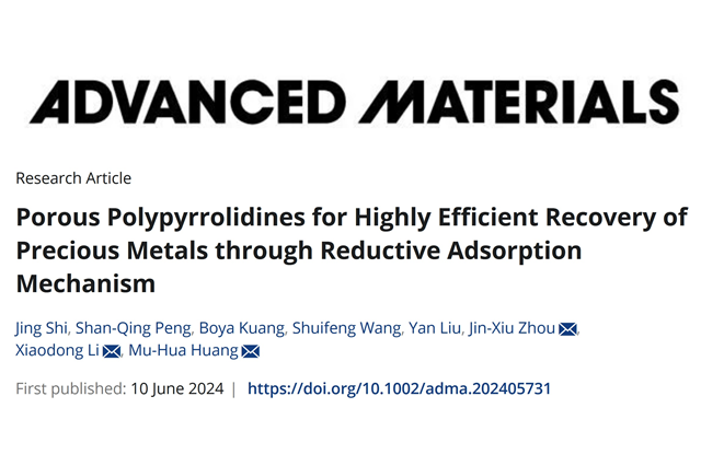 北理工材料學院黃木華課題組在多孔高分子材料的創制及貴金屬回收方面取得重...