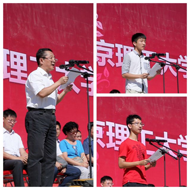 航天五院西安分院左剛同志代表新生家長發言,談及選擇北京理工大學的初衷和對孩子的成長期望;校學生會主席、機電學院任禹名同學代表在校生發言,談及對北理工人的情懷和擔當的認識,希望學弟學妹繼續傳承;管理與經濟學院陳佳隆同學代表新生發言,對大學生活進行了展望,表達了以嶄新姿態迎接大學生活的信心。