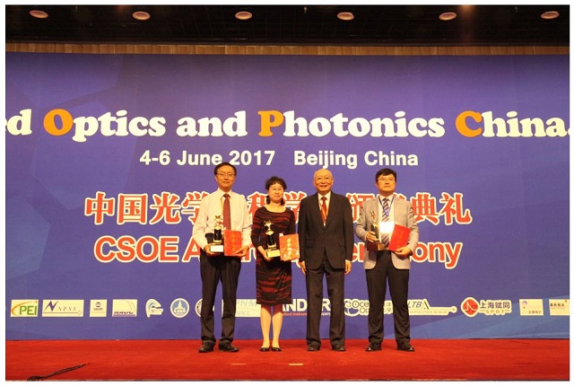 編輯:盛筠 審核:盛筠 閱讀次數:2017年國際應用光學與光子學技術交流會(AOPC2017)暨第三屆中國光學工程學會頒獎典禮于2017年6月4日-6日在北京國際會議中心舉行,北京理工大學申報的“頭戴式顯示技術研究及應用”項目榮獲“科技創新獎”技術一等獎。北京理工大學光電學院王涌天教授受邀參加大會并領獎。