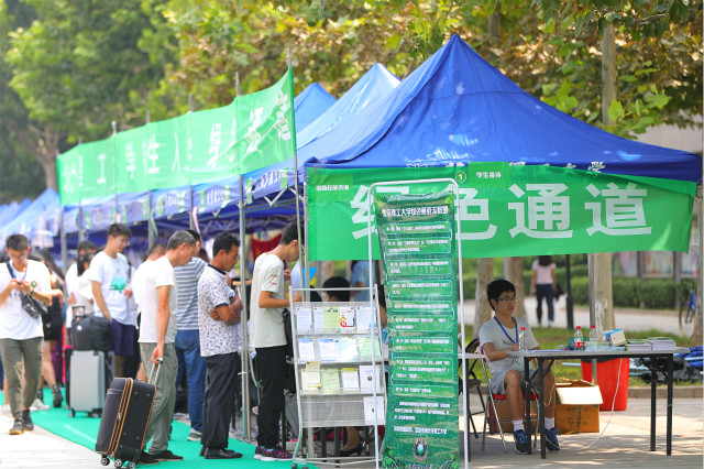 學校堅持“以人為本”的服務理念,安排車輛赴火車站開展新生接送服務,并將新生行李集中運送回校區;設置家長休息區;開設網上入學英語測試專用機房;組織出版社開展售書服務,分專業打包為新生提供第一學期所用書籍;做好新生入學階段的生活用品售賣、熱水保障和餐飲服務等工作;有序發放軍訓服裝和物資;開放校園,做好車輛引導和停放的組織工作。