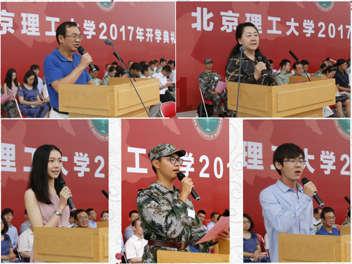 教師代表、國家技術(shù)發(fā)明獎一等獎獲得者、信息與電子學(xué)院吳嗣亮教授結(jié)合科研經(jīng)歷,勉勵新生要堅定信念,增長才干,續(xù)寫北理工人科技報國、科技強軍的精彩篇章。教師代表、北京市教學(xué)名師、馬克思主義學(xué)院李林英教授分享了自己在北理工學(xué)習(xí)、工作和生活的感悟,鼓勵新生們發(fā)奮學(xué)習(xí),創(chuàng)造有信念、有夢想、有奮斗、有奉獻(xiàn)的人生。