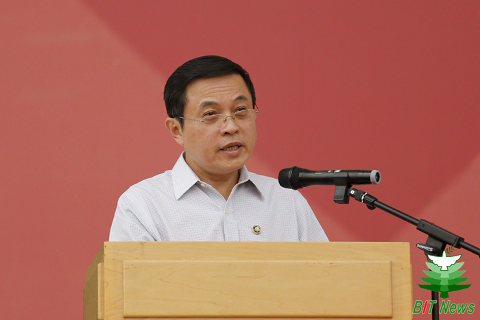 2017年9月10日上午,北京理工大學(xué)隆重舉行2017年開學(xué)典禮。參加開學(xué)典禮的有黨委書記趙長祿、校長胡海巖、常務(wù)副校長楊賓、副校長王曉鋒、副校長李和章、紀(jì)委書記楊志宏、副校長梅宏、副校長方岱寧,校長助理汪本聰、楊亞政、龍騰,北京市房山區(qū)高教園區(qū)管委會常務(wù)副主任路鵬以及各學(xué)院、各部門負(fù)責(zé)人,教師代表、學(xué)生代表和部分新生家長。典禮由汪本聰主持。