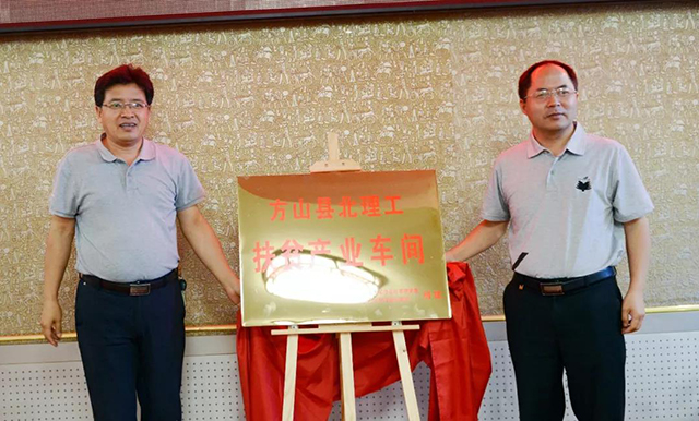 捐建儀式上,方山縣委副書(shū)記閆斌勝介紹了方山縣的基本情況、脫貧攻堅(jiān)工作情況以及我校幫扶方山脫貧對(duì)接工作情況,并與自動(dòng)化學(xué)院院長(zhǎng)夏元清為“方山縣北理工扶貧產(chǎn)業(yè)車(chē)間”揭牌。