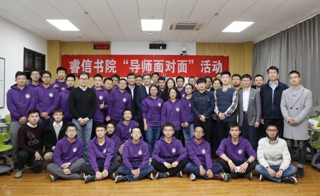 當天中午,張軍首先來到睿信書院參加“FaceTime導師面對面”活動。在活動中,清華大學自動化系教授莫一林,北理工自動化學院教授史大威,北航研究生潘佳義和北理工研究生劉冬琛,分別作為睿信書院25班的校外導師、學育導師和朋輩導師,與同學們“面對面”分享了自己的大學生活和科創經歷?!癋aceTime導師面對面”活動是睿信書院立足學?!叭珜煛敝贫?,為同學們搭建的師生交流平臺,優質的“導學”活動受到了書院學生們的歡迎。