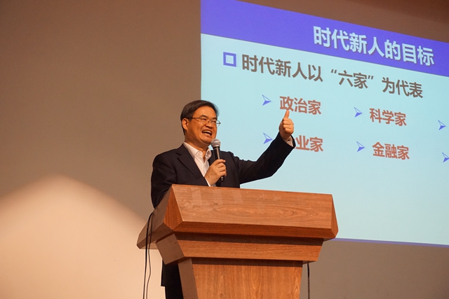 張軍為福州一中師生帶來了精心準備的領航講座,從“偉大的學校、活力的學校、青春的學校”三個方面詳細介紹了北京理工大學。他講到,“為人民謀幸福、為民族謀復興”的創辦宗旨,支撐著北京理工大學培養了一代又一代愛國、自強、創新、奮斗的領軍領導人才。他用北京理工大學七十九年的建校實踐涌現出的鮮活實例號召福州一中學子做頂天人、干飛天事,立擎天志。最后,他寄語青年學子不懈奮斗,將個人夢融入中國夢,爭做“胸懷壯志、明德精工、創新包容、時代擔當”領軍領導人才。