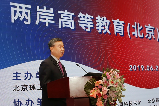 2019年6月27日,由北京理工大學(xué)主辦的“2019兩岸高等教育(北京)高峰論壇”在京順利召開(kāi)。本屆論壇以“兩岸融合、共創(chuàng)一流”為主題,凝聚兩岸教育新共識(shí),打造交流合作新平臺(tái),全面推動(dòng)一流大學(xué)和一流學(xué)科建設(shè)。教育部港澳臺(tái)辦、國(guó)臺(tái)辦交流局、北京市臺(tái)辦、教委等單位領(lǐng)導(dǎo)參加論壇。來(lái)自兩岸百所高校的校長(zhǎng)、專家和學(xué)者圍繞人才培養(yǎng)、科學(xué)研究與學(xué)科建設(shè)、產(chǎn)學(xué)研合作與社會(huì)服務(wù)、文化傳承與創(chuàng)新發(fā)展等進(jìn)行深入研討。北京理工大學(xué)黨委副書(shū)記、副校長(zhǎng)項(xiàng)昌樂(lè)主持開(kāi)幕式。