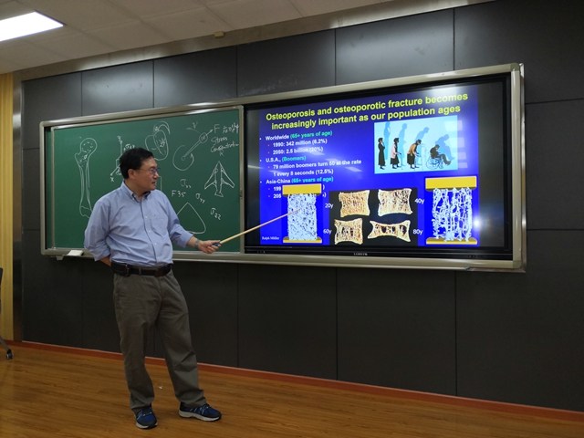 國際宇航科學院院士欽逸仙教授給學員的授課內容是空間生理與生物醫學工程。他圍繞骨丟失、肌肉萎縮、輻射風險和心血管變化四個方面,討論了空間環境對各自的影響,并介紹了他們課題組所取得的最新進展。