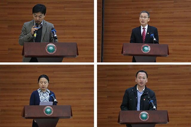 黨委書記高偉濤同志做了題為《堅定信心 勇毅篤行 為建設一流的數學與統計學院而努力奮斗》的報告。報告回顧了四年來,在學校黨委行政的正確領導下,學院黨委帶領全院師生在黨建及思想政治教育、教學及人才培養、學科建設及科學研究、師資隊伍建設、國際交流與合作、文化氛圍建設等方面取得的成績,并對學院黨委未來的工作提出了建議,希望新一屆黨委堅持學習宣傳貫徹黨的十九大精神,以習近平新時代中國特色社會主義思想為指導,以深入推動“雙一流”建設為目標,努力提高學院師生的思想政治素質,加強基層組織建設,提高治院辦學能力,創建激情進取的發展氛圍。