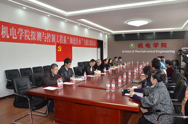 為貫徹落實習(xí)近平總書記在十九大報告提出的“加強師德師風(fēng)建設(shè),培養(yǎng)高素質(zhì)教師隊伍”重要指示,增強教師的時代責(zé)任感和使命感,3月23日下午,機電學(xué)院探測與控制工程系教工黨支部在3號教學(xué)樓146會議室舉行“師德傳承”主題黨日活動。學(xué)校黨委組織部副部長周波,孫碩,機電學(xué)院黨委書記王偉,黨支部書記陳慧敏等全體黨員參加了活動。