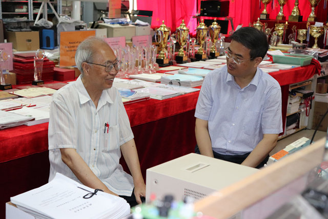 在90歲高齡的洪寶華教授家中,趙長祿書記與其親切交談,向他介紹了學校目前的發展狀況,認真了解洪老師的身體、生活等情況,感謝洪老師作為管理學科的老專家,夯實了管理學的學科基礎,為學校管理學科發展作出的突出貢獻,并仔細傾聽他關于加強實踐教學,提高學生動手能力和實踐能力的建議。趙長祿書記囑咐隨行的離退休工作部門同志,要多與老教授們溝通交流,多傾聽他們的建議,珍惜老同志這筆學校的寶貴財富。