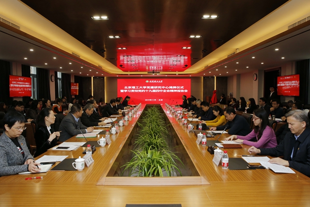 在“不忘初心、牢記使命”主題教育深入開展之際,11月29日,北京理工大學黨建研究中心揭牌儀式暨學習貫徹黨的十九屆四中全會精神報告會在北京理工大學舉行。工業和信息化部直屬機關黨委一級巡視員田川,中國兵器工業集團公司黨組書記、董事長焦開河,中國葛洲壩集團股份有限公司黨委書記、董事長陳曉華,中組部黨建研究所原巡視員、全國黨建研究會原專職副秘書長陳東平,北京首航艾啟威節能技術股份有限公司副總經理楊睿,北京理工大學黨委書記趙長祿、黨委常務副書記項昌樂、黨委副書記包麗穎出席揭牌儀式。會議由項昌樂主持。