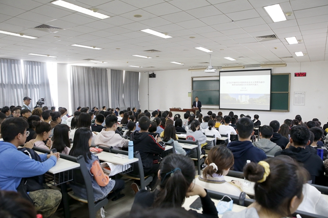 秋高氣爽,疊翠流金。在北京理工大學良鄉(xiāng)校區(qū)理科教學樓401教室里,趙長祿正在為來自2020級精工書院、明德書院和睿信書院的236名新生講授“習近平新時代中國特色社會主義思想概論”第一課——《以習近平新時代中國特色社會主義思想為指引 做擔當民族復興大任的時代新人》。趙長祿用寬廣的視野、豐厚的知識、風趣的語言,以習近平新時代中國特色社會主義思想為主線,分別從“中國特色社會主義進入新時代,黨和國家重大戰(zhàn)略部署”“國內(nèi)外環(huán)境發(fā)生深刻變化,我國經(jīng)濟社會發(fā)展的新形勢”“貫徹落實‘四為方針’,北理工的歷史使命”“實現(xiàn)中華民族偉大復興,青年學生的時代擔當”四部分進行授課。課堂上,同學們認真聆聽、用心領悟,課堂氛圍溫馨而活潑。
