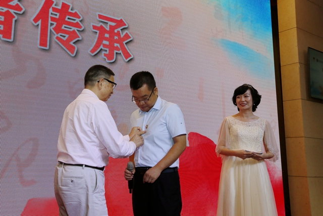 榮休教師代表、管理與經濟學院韓伯棠教授為新教師代表、信息與電子學院優秀青年人才胡晗佩戴校徽,并將自己主編的第一版《管理運籌學》精品教材贈送給新教師,希望老一輩嚴謹的治學態度、寶貴的教學經驗和愛生榮校的為師之道薪火相傳。