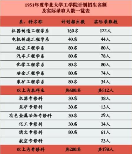 1951年6月,教育部決定全國高校統一招生。華大工學院計劃招收本科生600名,專科生200名。在考生可從多所錄取高校擇一報到的背景下,截止到9月開學,報到學生651人,報到率達到高達91.74%,報考華大工學院的學生數量占全國報考工科大學考生總數40%。全校錄取平均成績位列全國高校首位。
