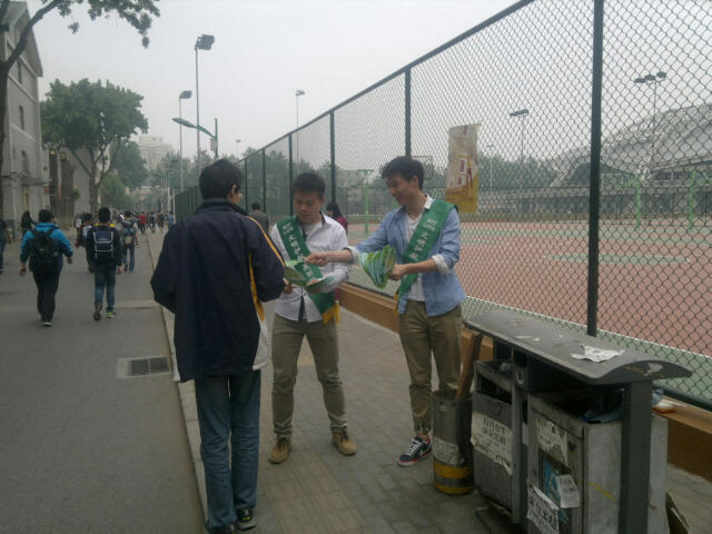 由北京理工大學校團委主辦,生命學院團委承辦的“文明護航 美麗校園”系列活動之垃圾分類知識推廣活動于2014年4月8日至2014年6月8日在北京理工大學中關村校區展開。生命學院本科、研究生共計8個團支部的團員滿懷構建“美麗校園”的激情和宣傳“綠色文明”理念參與了本次活動。