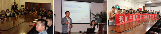 2013級研六班團支部舉行了“我的中國夢•奮斗的青春最美麗”主題團日活動。活動主要分為三部分,在“談青春”環節同學們講述了自己的學習、成長、成才夢想,分享了自己對青春的不同見解,結合習近平總書記昨日在北京大學師生座談會上的講話,同學們更深刻的理解了社會主義核心價值觀,感受到了奮斗的青春最美麗。在“共進步”環節中,管理與經濟學院青春榜樣獲選人徐芳俐同學和大家分享了自己的創業經歷、工作感受、奮斗歷程等方面,與大家進行了熱烈的現場分享互動,鮮活的青春奮斗事跡引起了同學們的極大共鳴。在“樹理想”環節,同學們共同觀看了勵志片“新鷹的重生”。