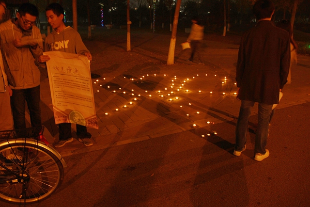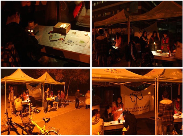 2014年10月26日晚,由信息二部三葉草志愿者協會舉辦的燭光慢遞活動在良鄉校區北食堂外側順利展開。