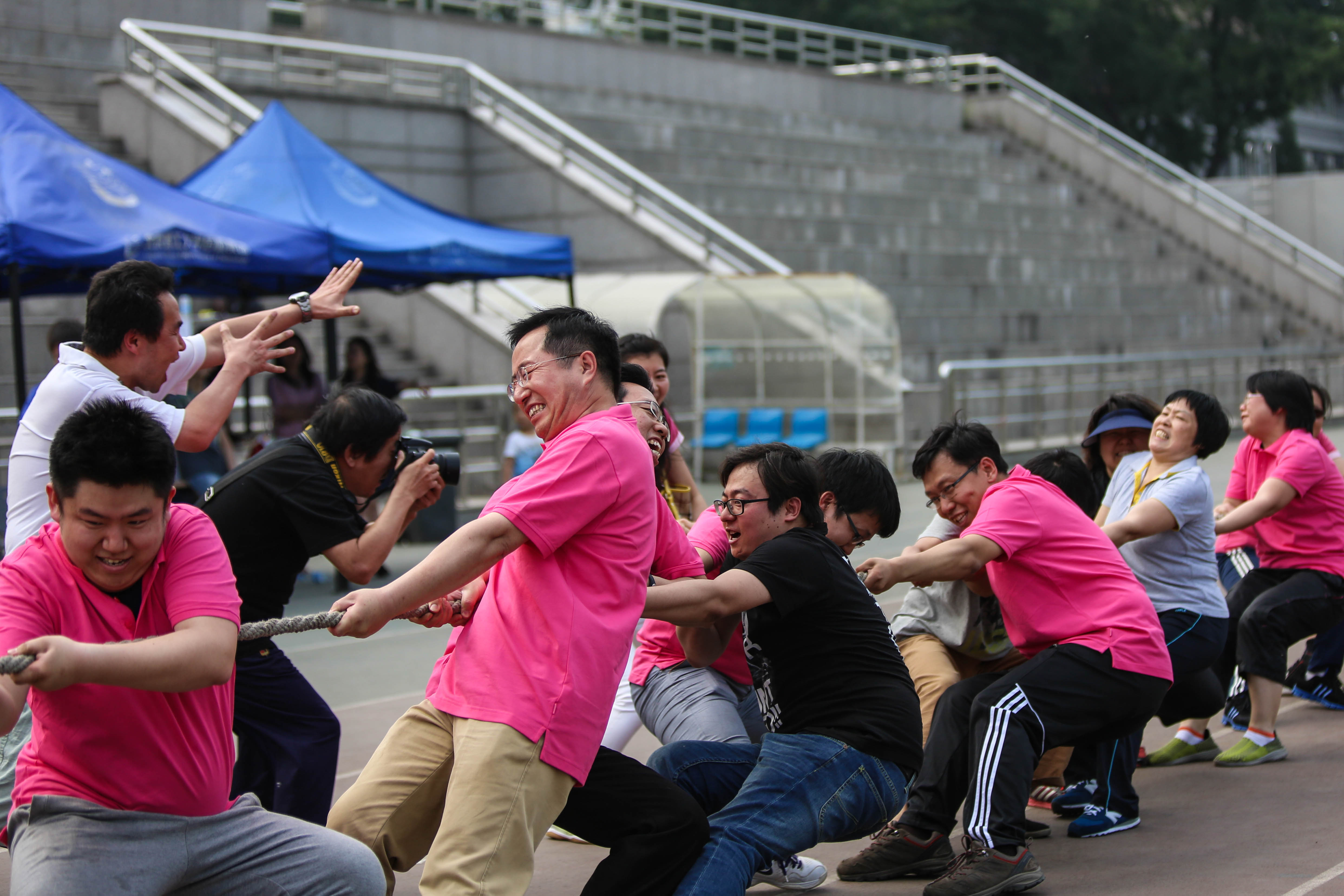 。。運(yùn)動(dòng)會(huì)各項(xiàng)比賽正進(jìn)行的激烈無(wú)比,南操場(chǎng)的教師運(yùn)動(dòng)會(huì)和研究生趣味運(yùn)動(dòng)會(huì)也正如火如荼的進(jìn)行著,老師和研究生們?cè)诰o張的科研和教學(xué)工作之余,積極參與體育運(yùn)動(dòng),體驗(yàn)運(yùn)動(dòng)的樂(lè)趣,鍛煉強(qiáng)健的體魄。為了增進(jìn)師生友誼,老師和同學(xué)們進(jìn)行了一場(chǎng)激烈無(wú)比的拔河比賽,雙方各出健將,全力以赴,加油喝彩聲不絕于耳,盡顯生命學(xué)院師生奮勇拼搏的精神面貌。