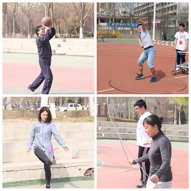 教職工組的比賽同樣吸引著同學(xué)們的目光,投籃、踢毽子、跳繩,老師們不同于往日的嚴(yán)肅,展現(xiàn)出了青春活潑的一面,歡聲笑語(yǔ)溢滿了整個(gè)籃球場(chǎng),那一刻他們是星光籃球場(chǎng)上最閃耀的明星……