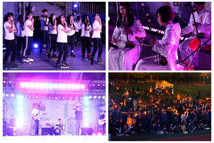 舞臺上,獨立音樂協會的樂手用清亮歌聲拉開了嘉年華晚會的帷幕,酷愛輪滑俱樂部展示了技藝高超的輪舞表演,紅幕布音樂劇社帶來了音樂劇《facade》,北理舞團、黑白漫畫社的勁爆演出將現場氣氛推向高潮。單對群相聲社表演了相聲《百味人生》,悅音原創音樂社演唱《春風十里》《一萬次悲傷》,龍藝社帶來了精妙絕倫的《牽絲戲》,粵文化交流社豪情演繹《亂世巨星》。校合唱團美妙的歌聲和交響樂團動人的演奏讓現場觀眾陶醉其中。