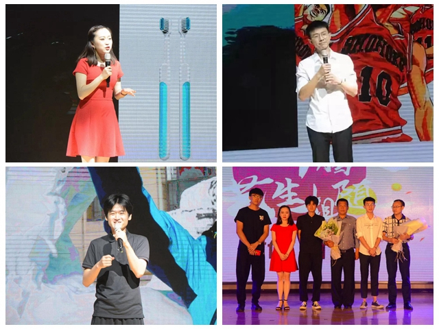 第四篇章中,校合唱團帶來的《我不知道風是在哪一個方向吹》讓我們又憶起曾經的迷茫與惆悵,臨別的不舍與感傷;“時代新人說”節目中,兩位徐特立獎學金獲得者郭萌睿、黎書,以及雪雕隊隊長劉冬分別講述了他們勵志故事,鼓勵在場同學不忘初心,繼續前行。隨后,大屏幕播放了部分學生父親的視頻寄語,給同學們帶來了驚喜。同時,兩位神秘嘉賓——劉冬和黎書兩位同學的父親“驚現”晚會現場,與孩子共同度過了一個特殊的父親節。