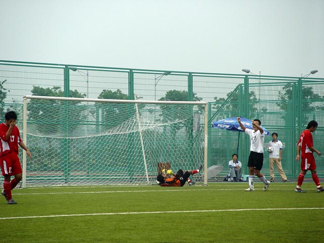 下半場30分鐘,我方5號張樹從左前場遠程吊射,對方守門員脫手后皮球滾入網窩,比分定格在2:0,我隊順利進入大運會足球決賽,將再次與東道主上海隊決一死戰。