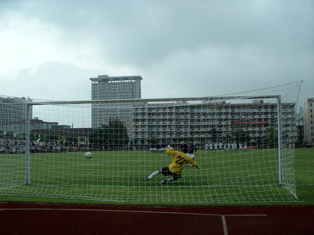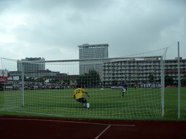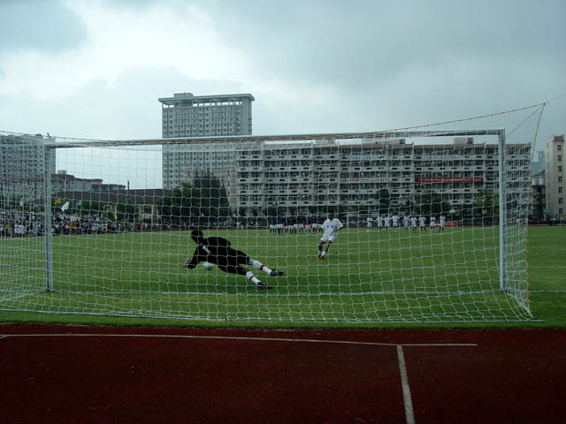 也許是隊員求勝心切,接下來的一個點球踢的太正,被對方守門員撲出。
