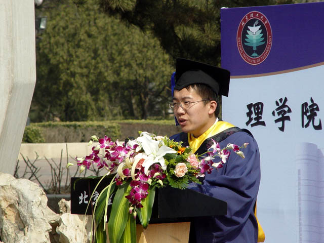 2005年3月20日,校園內(nèi)春風(fēng)拂面,百花初開。理學(xué)院2002級(jí)研究生畢業(yè)典禮暨學(xué)位授予儀式在雄壯的國歌聲中于中心花園校訓(xùn)前隆重召開。