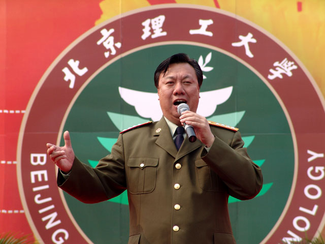 著名軍旅歌唱家劉彬帶來的鏗鏘有力的“當兵的人”,使在場的經歷過軍訓的廣大同學熱血沸騰。隨后,他還用優美的旋律演繹了國家副主席、我校校友曾慶紅同志祝賀校慶的詩詞。