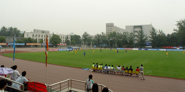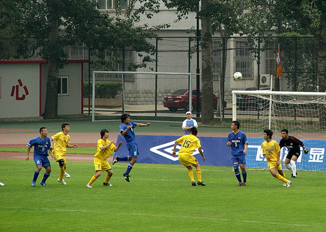 6月5日上午九點(diǎn),04-05飛利浦全國大學(xué)生足球聯(lián)賽總決賽的首場比賽在中國人民大學(xué)足球場拉開戰(zhàn)幕。本場比賽的交戰(zhàn)雙方是東道主中國人民大學(xué)和衛(wèi)冕冠軍北京理工大學(xué)。就兩隊(duì)實(shí)力對比來說,北京理工要強(qiáng)一些,但中國人民大學(xué)曾經(jīng)在去年的北京高校杯上兩勝北理,又占有主場之利,所以也并非沒有勝出的機(jī)會(huì)。但今天勝利的天平最終還是向北理傾斜了,經(jīng)過90分鐘的激烈爭奪,北京理工大學(xué)技高一籌,2:1小勝中國人民大學(xué)。