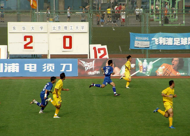 6月10號(hào)下午4點(diǎn),已經(jīng)打了近一周的第五屆飛利浦大學(xué)生足球賽,在北航進(jìn)行了一場(chǎng)激烈的半決賽,對(duì)陣雙方是上海東華大學(xué)和北京理工大學(xué)。最終,東華大學(xué)憑借上半場(chǎng)開(kāi)局的良好局面,以2:0擊敗實(shí)力強(qiáng)勁的北京理工,昂首挺進(jìn)決賽。