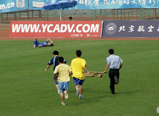 在6月10日下午4:00于北京航空航天大學(xué)體育場(chǎng)舉行的我校足球隊(duì)與東華大學(xué)足球隊(duì)的半決賽中,我校足球隊(duì)以0:2惜敗。