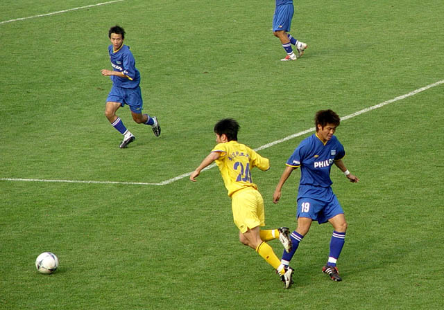 比賽剛進(jìn)入到下半場(chǎng)的時(shí)候,北理打出了自己的霸氣,展開(kāi)了強(qiáng)勢(shì)的反攻,在對(duì)方的禁區(qū)進(jìn)行狂轟濫炸,可是門(mén)前幾次絕佳的機(jī)會(huì)都被表現(xiàn)神勇的東華門(mén)將化解了。在下半場(chǎng)打到第20分鐘的時(shí)候,北理在亂戰(zhàn)中攻入一球,可是有人在禁區(qū)里犯規(guī)了,裁判鳴哨在先,進(jìn)球無(wú)效。隨后,北理多次在中前場(chǎng)斷球,可是東華的防守固若金湯,不給對(duì)方一點(diǎn)機(jī)會(huì)。比賽一度打得比較快,雙方隊(duì)員體力消耗很大,打到下半場(chǎng)30分鐘左右,隊(duì)員們情緒都有點(diǎn)激動(dòng),場(chǎng)面有些混亂,不過(guò)裁判很快控制了節(jié)奏。之后,北理頻頻創(chuàng)造良機(jī),但是沒(méi)有顯著成果,最后,比分鎖定在2:0。