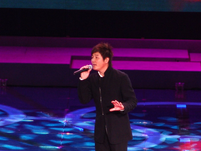 正式進入倒計時1000天之后,歌星劉歡和那英共唱一首《同一個世界 同一個夢想》