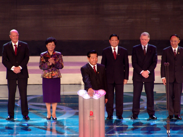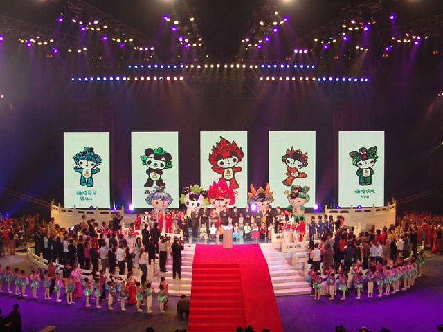 活動進入高潮,由中央政治局常委、全國政協主席賈慶林為2008奧運會吉祥物揭開神秘的面紗。