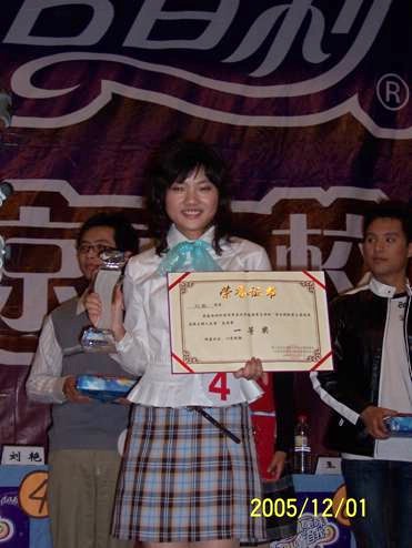 12月1日晚,第三屆吉百利杯北京高校主持人大賽總決賽在對(duì)外經(jīng)濟(jì)貿(mào)易大學(xué)視聽中心落下帷幕。我校人文學(xué)院法律系03級(jí)劉艷同學(xué)作為本次大賽北理分賽區(qū)第一名參加了此次比賽,并且取得了第三屆“吉百利杯”北京市高校主持人大賽總決賽第一名的好成績(jī)。