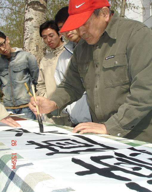 雖然下午風較大,但舞動的宣紙上更有舞動的文字
