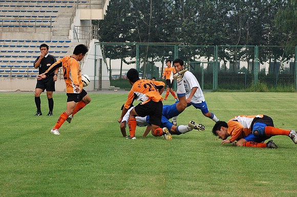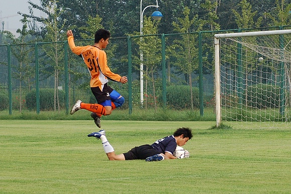 畢竟北京巴士隊是支比較專業的職業球隊,體力比較充分,比賽經驗也比較豐富,在比賽的最后十幾分鐘內,幾乎全線壓上至我方禁區,給我方的防守造成了極大的壓力,好在隊員全力以赴進行密集防守,加上守門員王毅的精彩撲救,才力保城門不失,將1:0的比分保持到了終場。