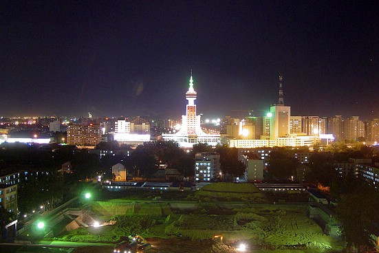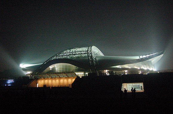 2006年9月19日晚,正在舉行啟用儀式和校園藝術節(jié)開幕式中的體育文化綜合館夜景。