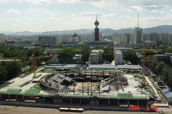 2003年8月29日,“非典”之后的場地,施工隊已經進駐。