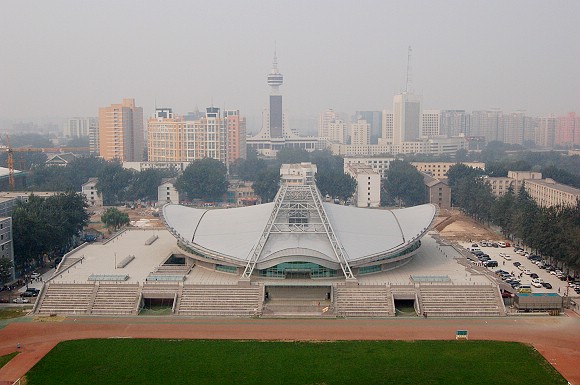 2005年9月20日,從剛竣工的大學生公寓2號樓頂上俯瞰校園,體育館儼然為校園的中心。