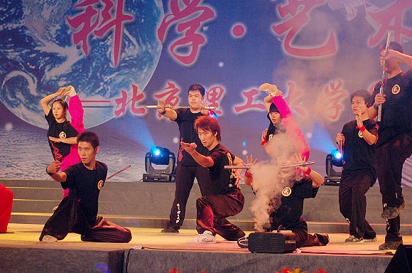 伴著節(jié)奏明快的歌曲《龍拳》,校武術(shù)隊(duì)的出場(chǎng)動(dòng)作也一鳴驚人。