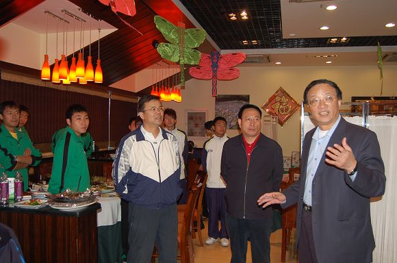 李志祥常務副校長在詢問足球隊員們的生活和學習情況。