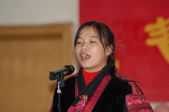 同學們在晚會上展現了各民族特有的服飾、舞蹈、歌曲等。