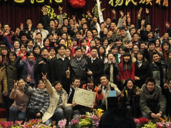 我院的參賽曲目是長征組歌的第一首《告別》以及一首精心挑選的經(jīng)典革命歌曲《紅軍鞋》,當晚,06級管理與經(jīng)濟學(xué)院新生以他們動情的演唱博得了在場觀眾一陣又一陣的掌聲,歡呼聲、掌聲連成一片,在中教報告廳回響,久久不能散去……在經(jīng)過了接連13個學(xué)院的精彩演唱后,在評委們一番嚴密的商討以及謹慎的評分后,我院以絕對優(yōu)勢取得了比賽的冠軍,在時隔一年之后,終于如愿重新回到了冠軍的領(lǐng)獎臺上。主持人一一宣讀了各個學(xué)院的所獲獎項,并由校領(lǐng)導(dǎo)、評為代表一一為獲獎單位頒發(fā)獎項,最后校領(lǐng)導(dǎo)與我院各級領(lǐng)導(dǎo)和參賽同學(xué)、學(xué)生干部合影留念……